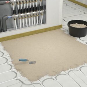 Výrobce vláknocementových fasádních obkladů Hardie® a sádrovláknitých desek fermacell® pro kvalitní suchou výstavbu a dřevostavby obecně doporučuje instalovat před rozdělovač topného okruhu puky fermacell® Therm25™. Ty byly vyvinuty speciálně pro tuto aplikaci. Pokud to nestačí a není prakticky možné vytvořit další frézování přímo v prvcích fermacell® Therm25™, doporučuje se plochu před rozdělovačem topného okruhu vynechat. Po položení topných trubek lze plochu o rozměrech maximálně 1×1 m vyplnit sádrovou Lepicí maltou fermacell™ nebo Akustickým podsypem fermacell™.